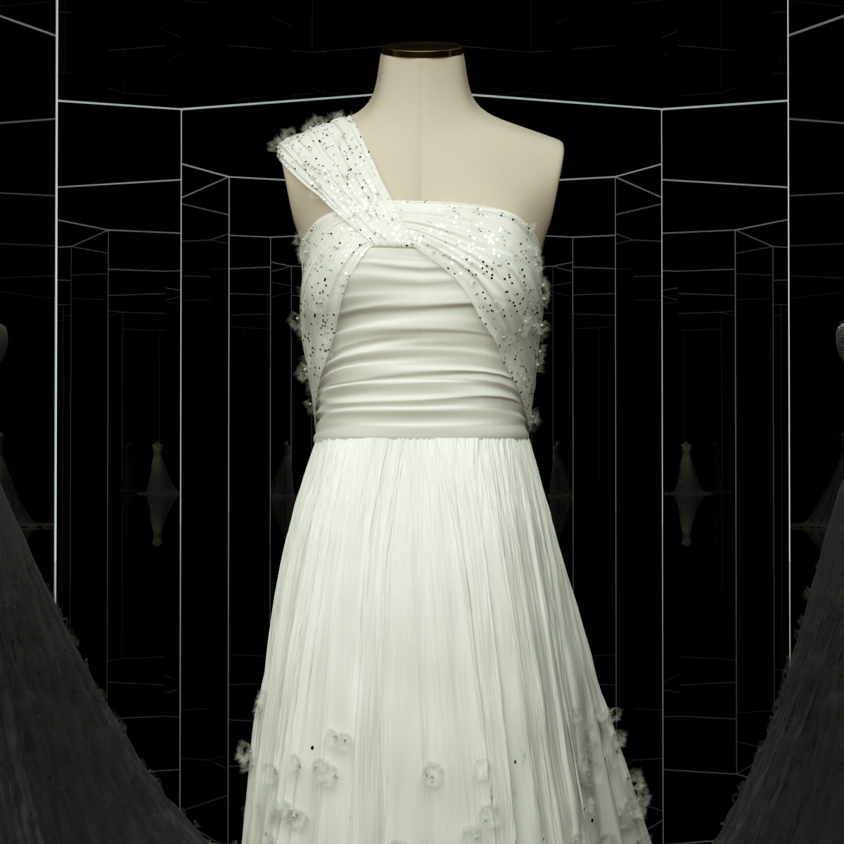 Modelled dress for NFT, called “The Dream,” a precise digital twin of the original gown by Wu, and will be available for purchase exclusively via DressX on Wednesday, July 13. The owner of the NFT will be able to wear the dress digitally and receive two tickets to the brand’s show at New York Fashion Week in September.